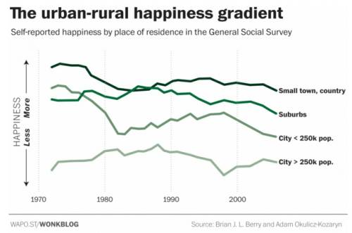 이같은 지수는 사회심리학계에서 어느 정도 정설로 인정받고 있다. 삶의 만족감, 즉 행복도는 사람들이 북적이는 것과 반비례한다는 연구결과가 많이 나와 있다. 시골 사람은 도시인보다 더 행복해하며 시내에 사는 사람은 읍내에 사는 사람보다 더 불행하다고 느낀다. 만원버스나 지하철을 타고 있을 때와 한적한 공원을 거닐 때를 비교해보자. 당연히 공원에 있을 때, 시골에서 지낼 때 더 기분이 좋고 행복감도 높아진다.
