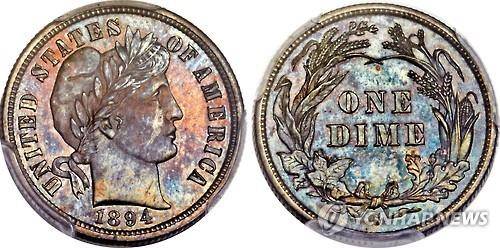 (댈러스=연합뉴스) 장현구 특파원 = 올해로부터 122년 전인 1894년 주조된 미국 10센트 동전이 경매에서 액면가의 2천 만배에 팔려 화제에 올랐다.