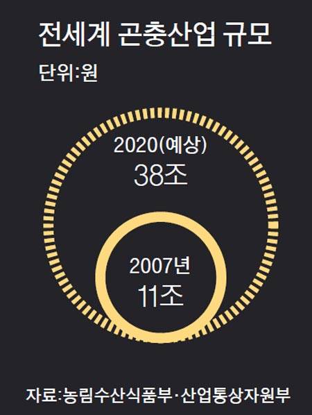 정부도 국내 곤충산업을 미래 먹거리로 선정하고 육성에 돌입했습니다. 농림축산식품부는 지난해 기준 3039억원 규모인 국내 곤충산업을 2020년까지 5000억원으로 키우기로 하고, 사육 농가도 현 724곳에서 1200곳까지 늘리기로 했습니다. 곤충 사업의 유통망을 정비하고 연구개발(R&D)에 집중투자하는 ‘제2차 곤충산업 육성 5개년 계획’도 발표했습니다.