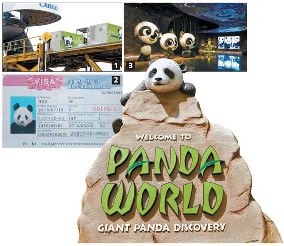 판다 커플은 청두 한국총영사관이 발급한 일반 연수비자 D-4를 받았어요. 한국정부가 동물에게 발급한 첫 비자예요. 인천공항을 통해 입국한 판다는 환영식을 마치고 같은 날 오후 5시 30분쯤 용인 에버랜드에 도착했죠. 공항~에버랜드 사이 83㎞의 거리 역시 항온과 항습기능이 있고 자동으로 수평이 맞춰지는 무진동 차를 타고 이동했습니다.