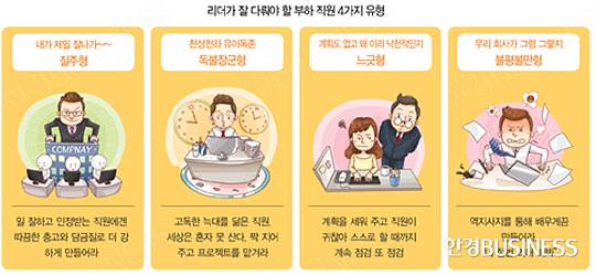 직원들마다 일하는 스타일이 있다. 특징들을 이해하고 그에 맞게 리더가 직원들을 이끌어 간다면 갈등은 줄어들 수 있다. 어쩌면 재주도 없고 골칫거리라고 여겼던 직원에게서 예상하지 못한 잠재력을 발견할지도 모른다.