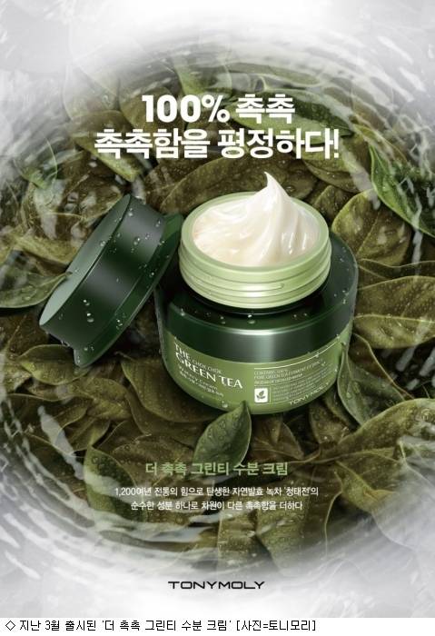 토니모리는 지난 3월 스킨, 로션, 에센스, 크림 등 4종으로 구성된 '더 촉촉 그린티 수분 라인'을 출시했다. 이 라인의 주요 재료인 청태전은 전라남도 장흥에서 자라는 야생 녹차를 4월 중순부터 6월 말까지 수확해 1년 동안 자연발효시킨 녹차다.