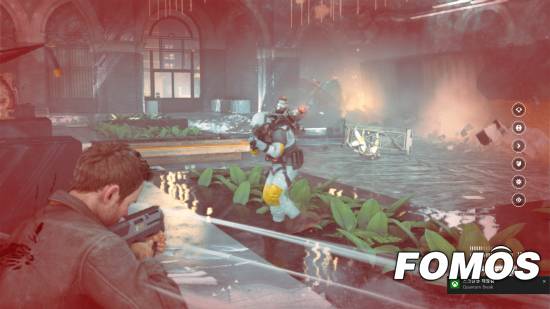 오히려 과거 작품이었던 '맥스 페인'이 게임의 진행에서 카툰 형식의 컷 신까지 물 흐르듯 자연스러운 스토리 연출을 보였다면 '퀀텀 브레이크'에서는 처음부터 끝까지 장황한 텍스트와 고유명사의 홍수를 마주하게 된다.