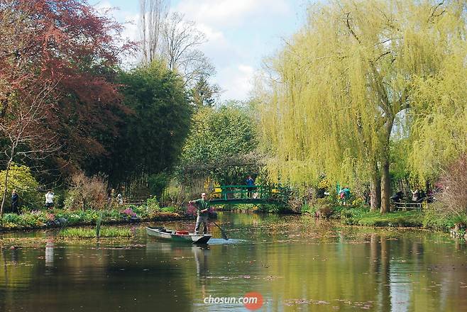 모네는 1883년 지베르니에 정착해 43년을 살았다. 마을 동쪽에 있는 '클로드 모네 재단'이 바로 모네가 살던 집과 정원이다. 2층 규모의 저택에는 작업실과 침실이 복원돼 있다. 그 앞으로 펼쳐진 '꽃의 정원'은 모네가 손수 아이리스, 양귀비, 장미, 모란을 심고 가꿨던 곳으로 여전히 향취가 가득하다. 거기서 지하 통로를 지나면 '물의 정원'이 나온다. 모네가 오랑주리 미술관 소장 연작을 비롯한 250여점의 '수련'을 그렸던 곳이다. 그는 강에서 물을 끌어오는 공사를 벌여 큰 규모의 연못을 만들었다. 무심히 지나치면 평범한 풍경일 수도 있지만, 잠시 벤치에 앉아 숨을 고르다 보면 이 연못의 진가를 느낄 수 있다. 파란 하늘과 늘어진 버드나무 넝쿨, 초록색 다리와 붉은 연잎이 물감처럼 어우러진 모습은 보는 각도와 햇빛의 양에 따라 시시각각 바뀌는 즉흥과 찰나의 인상주의 화폭이었다. 바람이 불고 나뭇가지가 흔들리는 순간, 모네 그림의 캔버스가 요동치고 붓털이 스치는 듯했다. 당초 일본식 정원에서 아이디어를 얻었지만, 모네는 이곳에 인상주의의 거대한 심연(深淵)을 만들어 놓았던 것이다.