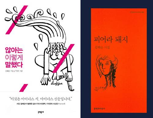 올해 프랑스에서 시집 세 권을 동시에 선보이는 김혜순은 “이 글들은 장르 명칭이 있는 것이 아니라 저 멀리 존재하는 미지의 나라, 애록AEROK에서 가장 멀리 있는 자리, 생각만 해도 현기증나는 그 멀고먼 나라, 시의 나라를 그리워하면서 쓴 글”이라며 “쓰는 동안에 거룩함이라는 쾌락, 연민이라는 자학, 건전함이라는 기만에만은 빠지지 말자고 다짐했다”고 ‘않아’의 ’마지막 말’에 썼다.