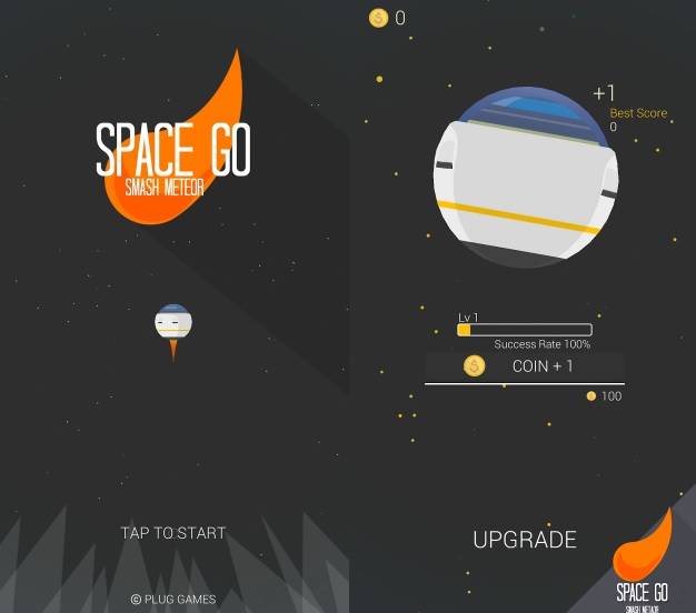 '스페이스 고'는 우주 미아가 된 인공위성을 찾아 떠나는 로켓의 이야기를 다뤘으며 편안한 느낌을 부여하는 BGM과 2D그래픽이 특징인 게임다. 유저들은 운석을 피하고 스킬을 이용해 운석을 파괴해야한다.
