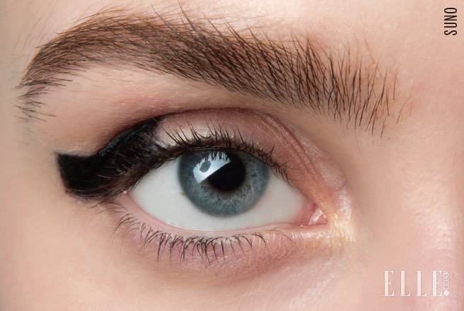 아이라인을 그저 밋밋한 눈매를 또렷하게 만드는 ‘필살기’쯤으로 여겼다면 이번 F/W 빅 쇼들을 주목할 것. 조르지오 아르마니와 펜디, 안나 수이, DKNY까지…. 약속이라도 한 듯 눈두덩을 도화지 삼아 블랙 에지를 주었으니까! 특히 에디터는 얼마 전 걸스데이 민아, 가인 등 여자 아이돌들이 애정하는 물고기 아이라인을 몇몇 지인들의 눈끝에서 발견하고는 탄성을 질렀다(물고기의 꼬리 지느러미처럼 두 갈래로 갈라진 아이라인을 일컫는 말. 안나 수이와 티에리 뮈글러 쇼를 참고할 것). 마치 눈 끝에 인조 속눈썹 두 가닥을 붙인 듯 눈이 길고 신비로워 보인 것(고양이 눈처럼 아이라인 끝을 길게 뺀 전형적인 캐츠 아이와는 차원이 다른 오묘한 눈매였고, 자세히 보지 않으면 눈치채지 못할 만큼 자연스러웠다!). 모델들의 룩에서 느꼈듯, 그 역시 어리고 예쁜 여자 아이돌들만 어울릴 거라는 생각이 착각이었음을 깨달은 순간이었다.