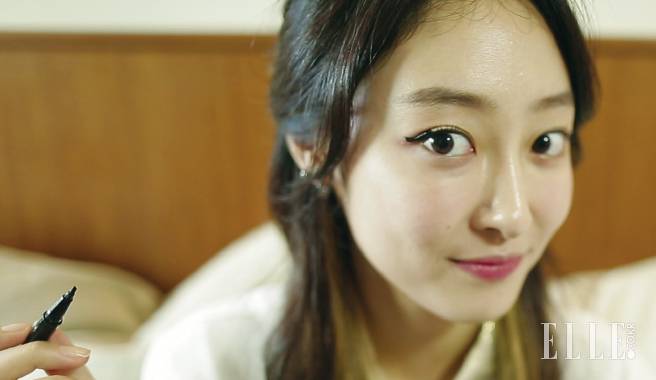 눈을 감고 있을 때도 예뻐 보여야 하는 법. 먼저 어퍼라인에 아이라인을 가늘게 그린다. 끝이 날렵한 리퀴드나 붓펜 타입 아이라이너로 눈초리 끝을 가볍게 두 줄 빼면 완성! 이때 두 번째 라인을 첫 번째보다 길게 그리면 눈매가 더욱 요염해지니 참고하자. 마스카라를 덧바르면 아이라인과 자연스럽게 어우러진다는 점도 잊지 말 것.