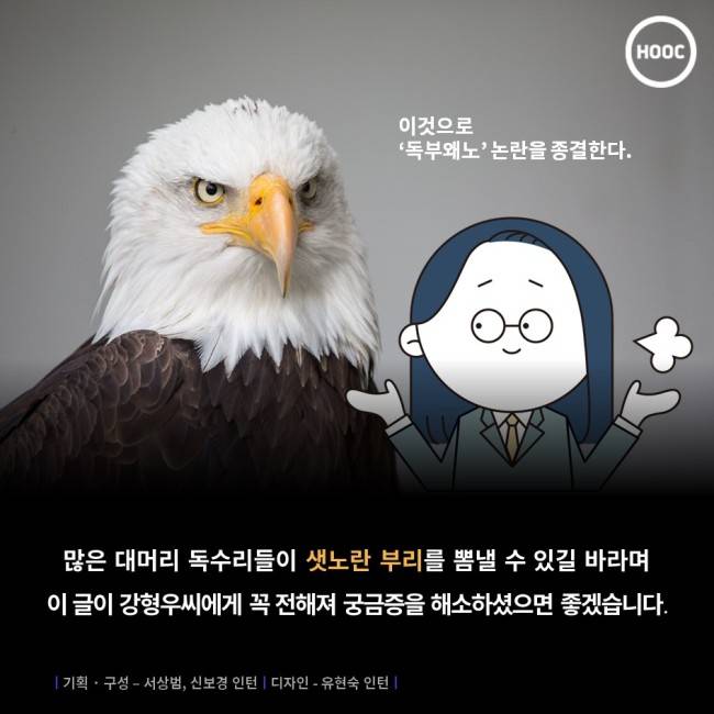 [HOOC=서상범 기자]독부왜노’라는 단어를 들어보셨나요? 얼마전 고양이는 왜 야옹이라고 울까라는 기사를 올린 HOOC 페이스북에 독자들이 남긴 단어였는데요. “독수리 부리는 왜 노랗나?”의 줄임말인 이 단어를 보고 궁금증에 검색을 해보았습니다.