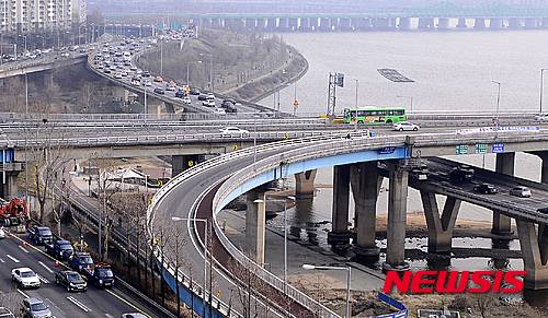 원효대교 보수공사 구간은 21일부터 오는 5월 31일까지 통제되며 강변북로에서 여의도 방향으로 가기 위해 서강대교나 마포대교를 이용해야 한다. 2016.03.20.