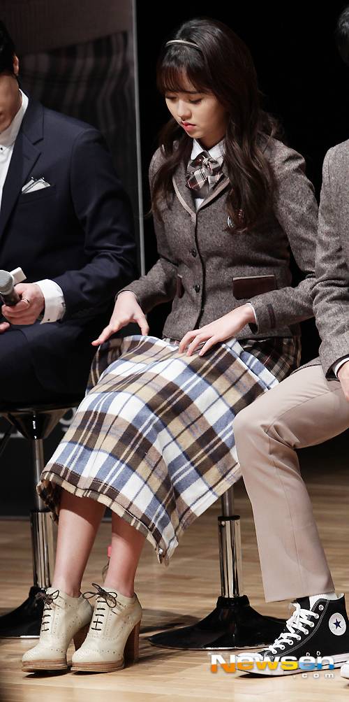 배우 김다예 김소현 서신애 김지안이 3월 10일 오후 2시 서울 강남구 일지아트홀에서 열린 웹드라마 '악몽선생' 제작발표회에서 담요로 치마를 가리고 있다.