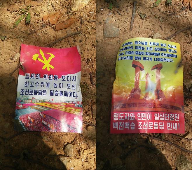 | ▲ 조선로동당 삐라 당대회 전후로 북한에서 살포한 대남전단지가 최근 많이 발견됐다. |