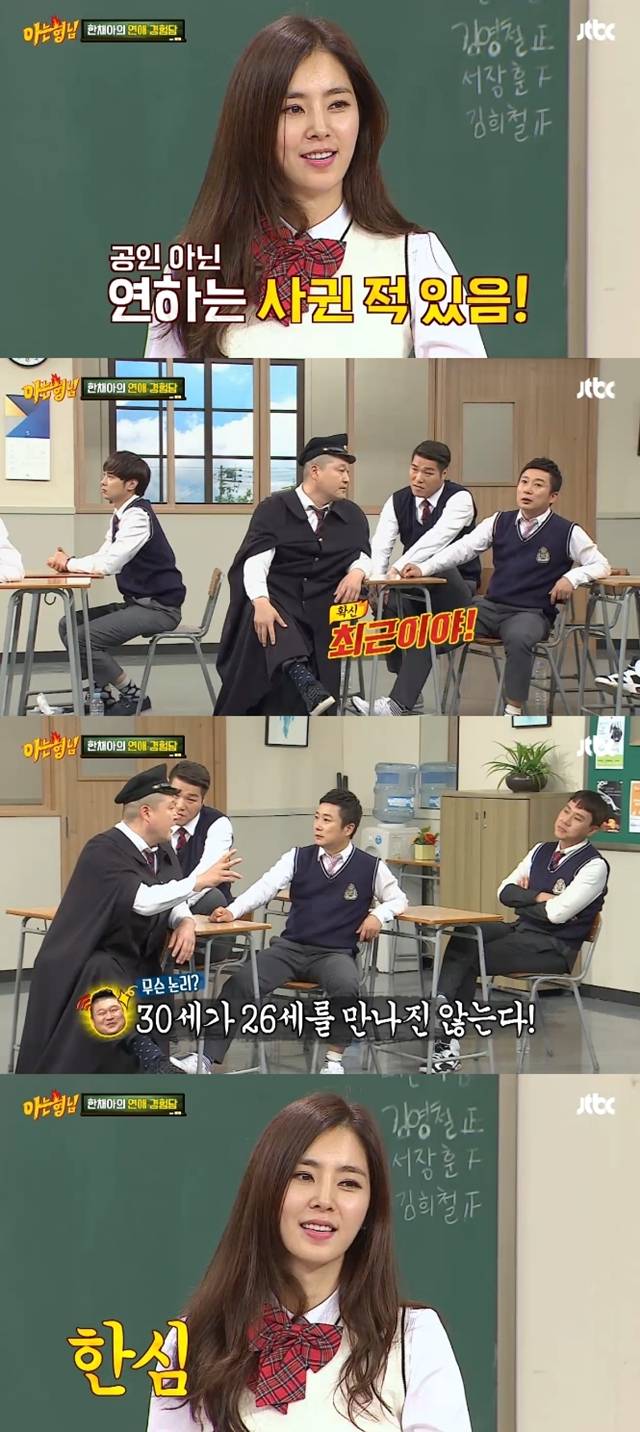 5월 14일 방송된 JTBC '아는 형님'에서 배우 한채아는 연예인과 교제해 본 적이 한 번도 없다고 말했다.