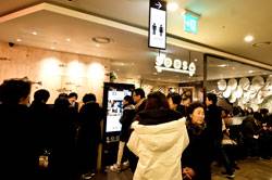 지난달 24일 오전 11시30분. 뉴코아 강남점 지하 1층 ‘후쿠오카 함바그’에는 자녀를 데리고 온 주부부터 두서너 명 단위의 대학생 등 식사를 하러 온 사람들로 가득했다. 점심시간이 가까워지면서 식당 앞 통로에는 사람들이 급격히 늘어났다. 낮 12시가 넘어서자 인산인해가 따로 없었다.