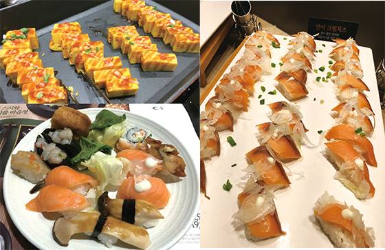 연어와 해산물 천국 뷔페다. 연어스시, 연어롤, 연어샐러드, 유부초밥, 계란스시, 타코와사비 스시 등 각종 해산물 스시는 물론 ‘하카다 명란마요밥’, ‘수제어묵’, ‘가마보코 나베’, ‘고추어묵’, ‘볶음면’, ‘홍합탕’, ‘우동’ 등 한끼 식사로도 충분한 메뉴에 면 종류, 디저트까지 없는 게 없다. 완성된 메뉴를 접시에 덜어 먹는 것도 편안하고 즐겁지만 메뉴에 따라서는 손님이 직접 재료를 골라 취향대로 먹는 메뉴들도 있어서 즐거움을 배가시킨다. 카이센라멘, 부타동, 크림카레우동, 돈베야끼, 부타노가쿠니 등 일본에서 맛보았던 별미도 이곳에서 맛볼 수 있다. 이용법을 알고 가야 제대로 즐길 수 있다. 일단 선결제 후 식사다. 대기 손님들이 많아서 취한 조치라고 한다. 주차는 2시간까지 무료이다. 샐러드바 이용료는 평일 점심(11:00~17:00) 1만2900원, 평일 저녁(17:00~22:00) 1만9900원, 주말과 공휴일 1만9900원, 초등학생 9900원, 미취학 36개월 이상 6500원이다. 테이블 이용은 입장 시간 기준 100분이다.