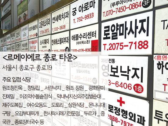 3대 먹방 빌딩의 주인공은 <그랑서울>, <D타워>, <르메이에르 종로 타운>이다. <그랑서울>은 종각사거리 옆에 있는 건물로 지하철 종각역 통로에서 바로 들어갈 수 있다. 이곳은 만화 <식객>에 등장했던 음식점들을 입점시켜 큰 인기를 끌고 있다. 일반음식점들도 공력이 깊은 브랜드와 독특한 메뉴들도 눈길을 모으고 있다. <D타워>는 ‘빌딩으로 들어간 이태원’이라는 생각이 들 정도로 전 세계의 음식들을 모아놨다. 물론 그 중에는 한식도 포함되어 있다. 피맛골이 철거되던 20세기 말에 생긴 <르메이에르 종로>는 당시 피맛골에서 수십 년 동안 장사를 하다 망연자실하게 되었던 상인들의 새로운 둥지 역할을 자임했다. 그렇게 시작된 종로, 무교동, 종각 일대의 맛집 지도는 그로부터 15년이 지난 이 즈음 1단계 완성된 것으로 보인다. 피맛골을 사랑했던 사람들에게 이 빌딩들은 정겨웠던 옛 추억을 떠올릴 건물 구조도 제공하고 있다. <D타워>의 ‘소호골목’, <르메이에르>의 ‘피맛골’, <그랑서울>의 ‘식객촌’이라는 이름의 인위적 골목이 그것들이다. 각각 빌딩의 성격에 맞춰 명명한 이름들이지만 전 구간이 연결되어 있는 만큼 ‘21세기에 재생된 조선의 피맛골’이라 해도 무방할 듯 하다.