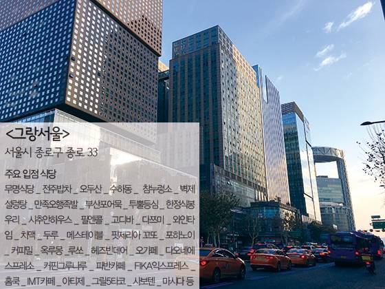 종로의 맛집 지도가 확 달라졌다. 청진동 일대의 구도심이 재개발되면서 마천루급 빌딩이 들어섰고, 빌딩 하부 공간에 주제가 분명한 맛집 블록이 생긴 것이다. 이 빌딩들은 종로 대로변 쪽을 골목 형태로 조성, 예전의 피맛골을 연상케 하는 디자인을 제공한다. 끌리는 맛집들도 가득해졌다.