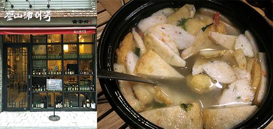 부산에서 대히트를 친 뒤 허영만의 음식 기행 만화 <식객>에 소개되면서 전국구 맛집이 된 오뎅 식당이다. 이 집 어묵이 맛있는 이유는 한두 가지가 아니다. 어묵의 기본인 생선 가는 작업을 멧돌로 해서 해산물의 섬유소가 파괴되지 않고 탄력이 오히려 강해진다. 기계가 아닌 손으로 직접 쳐대서 식감이 쫄깃하다. 튀기기 전 스팀으로 살짝 쪄내 기름기가 덜하고 맛도 담백하다. 그렇게 만든 어묵을 개별냄비에 끓여먹는 ‘어묵두루치기’(1만5000원), 어묵꼬치(1만2000원), 어묵탕(1만8000원), 유부주머니(1만8000원), 스지어묵탕(2만8000원) 등을 맥주, 소주, 사케 등과 함께 즐길 수 있다. 점심 메뉴는 따로 있다. 유기농 채소와 함께 나오는 통영산 멍게비빔밥, 어묵전골, 이까슈마이(오징어 딤섬) 등이 그것이다. 저녁 시간에 오뎅바에 앉으려면 조금 서두르는 게 좋다. 예닐곱 사람이 앉을 만한 바가 하나뿐이기 때문이다.