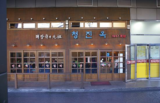 지금 그랑서울이 들어선 자리에 원래 청진옥이 있었다. 1937년에 그 자리에 개업했다가 2000년대 후반에 이곳으로 이전했다. 80년을 바라보는 해장국집으로 24시간 동안 고은 소 뼈 국물에 선지와 소의 양지, 내장, 우거지 등을 넣어 뚝배기에 내오는 해장국(9000원)이 대표 메뉴다. 많은 양을 원한다면 ‘특해장국’(1만2000원)을 주문하면 된다. 해장국은 원래 술 마신 다음날 속을 풀기 위해 먹는 음식인데, 이 집은 담백한 해장국 외에 안주국(1만3000원), 뚜구국(2만원), 모듬수육(3만5000원), 빈대떡(1만3000원) 등 술을 부르는 메뉴들도 줄줄이 있어서 속 풀러 갔다 결국 술 푸고 오는 경우도 많다.