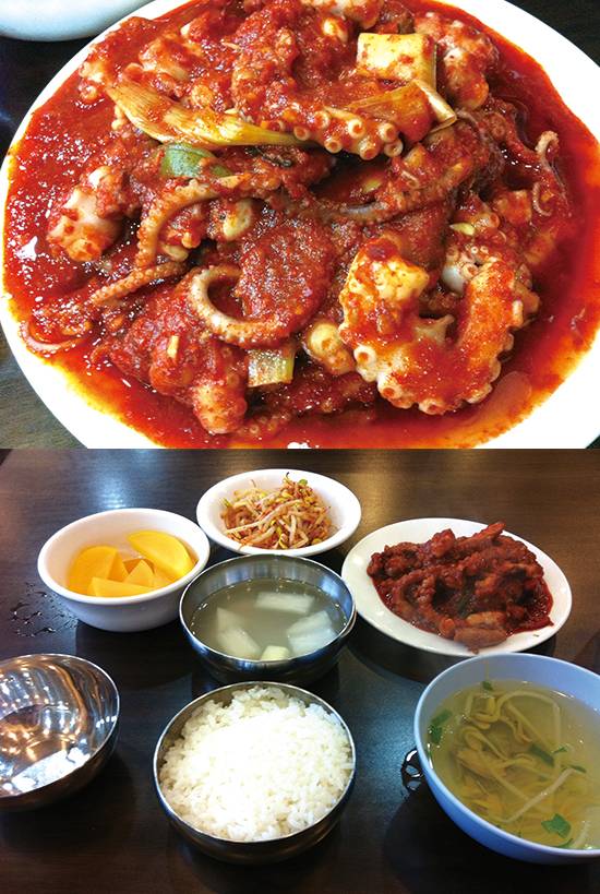 무슨 말이 더 필요할까. 피맛골 첫째 골목(교보문고 앞에서 무교동까지) 마지막 한옥에서 수십 년을 장사하던 서린낙지 역시 이곳으로 이전한지 10년이 되었다. 그동안 카운터를 지키던 아버지 사장님 자리에 아들이 서 있다. 손님들 또한 세대교체가 된 느낌이다. 서린낙지가 무교동의 쟁쟁한 낙지 시장에서 높은 가치를 인정받고 있는 것은 낙지볶음(1만8000원)이다. 일단 맵고, 부드러우며, 뒷끝이 개운하기 때문이다. 먹을 때는 매워 죽을 것 같지만 계산하고 나갈 땐 말짱해진다. 게다가 수십 년 동안 변하지 않는 맛도 서린낙지를 좋아하지 않을 수 없는 이유다. 조개탕(1만원), 공깃밥과 함께 먹으면 조화가 잘 이뤄진다. 서린낙지의 또 하나 히트 상품은 ‘베이컨소시지’(1만5000원)이다. 피맛골 시절에 새로운 메뉴로 내놓았는데, 당시 그 맛에 열광하던 여인들이 어느덧 중년이 되었고 당시 아버지 손에 이끌려 생전 처음 낙지를 맛보았던 어린이가 청년이 되어 이집의 단골이 되었다.