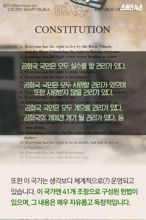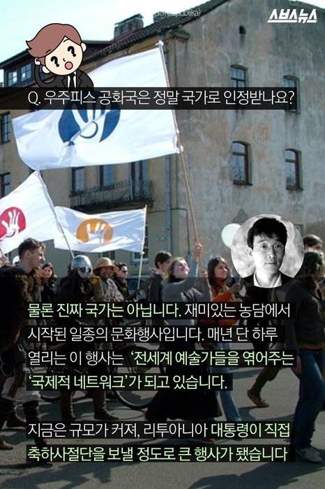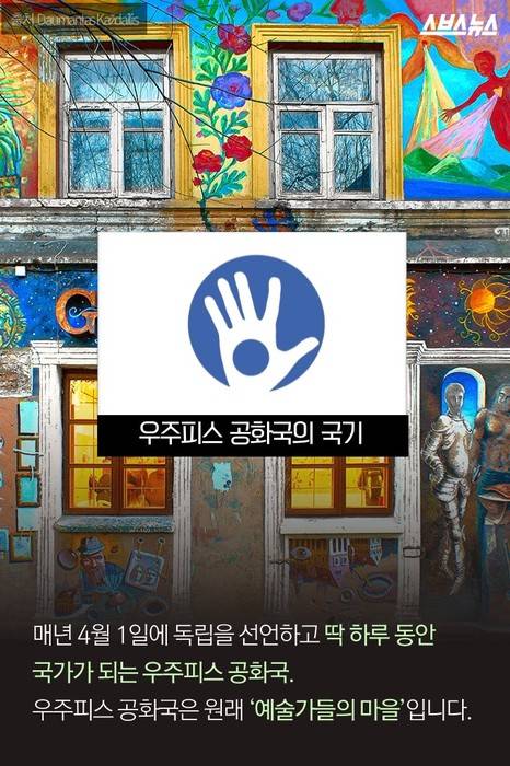 매년 4월 1일, 북유럽에 위치한 작은 나라 리투아니아에서는 정말 거짓말 같은 일이 일어납니다. 나라 안에 또다른 '나라'가 모습을 드러내기 때문입니다. 리투아니아 수도 빌뉴스에 위치한 비공식적 국가 '우주피스 공화국'은 만우절이 될 때마다 독립을 선언합니다. 4월 1일 오늘, 이 곳에서 무슨 일이 벌어지고 있을까요?