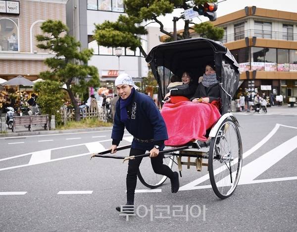 | ▲ 가미쿠라시내를 구경할 수 있는 인력거. 요금은 30분에 1인 7,000엔, 2인 9,000엔, 3인 1만3,500엔을 받는다.(사진=지성진 작가) |