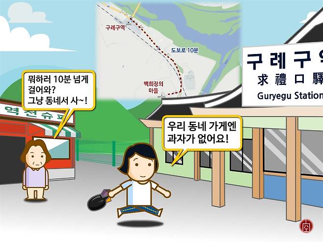 | ▲ 구례구역으로 과자 사려 가는 백희정 |