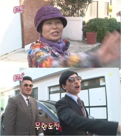 ‘무한도전’은 매년 달력을 만들어 판매, 수익금은 불우이웃을 돕고 있다. 2012년 11월 당시 제작진은 2013년 달력을 주문한 시청자에게 멤버들이 직접 배송을 하는 특집을 마련했다. 유재석은 데프콘과 부산 시민들을 만났는데, 부산 아주머니 이명숙 씨가 안방극장에 웃음 폭탄을 투하했다. 이 씨는 유재석을 만난 후 “나는 감동이 없다”라면서 “가수가 좋은지 탤런트가 좋은지 모르겠다”라고 말했다. 허나 유재석은 조금 전까지 좋은 호응을 보이던 아주머니의 시큰둥한 반응을 농담했다. 또 데프콘을 향해 ‘대포폰’이라고 말실수를 했고, 방송에 나오면 안 된다고 손사래를 치면서도 자신의 이름을 말해 모두를 웃게 했다.