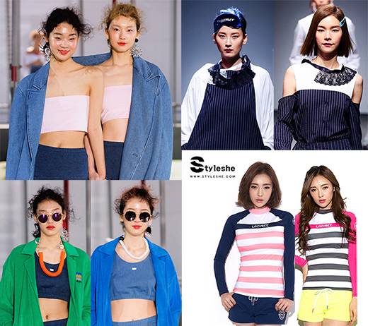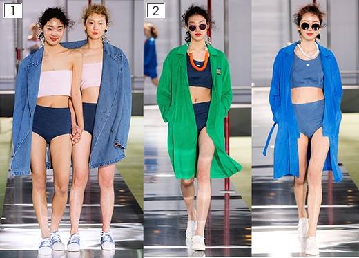 SJYP의 시밀러룩은 수영복 위에 서로 다른 색상의 트렌치코트를 착용, 각각의 스타일에 맞는 선글라스와 목걸이로 간결하면서도 센스있는 컬러매치를 선보였다.
