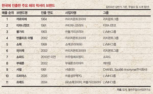 이들은 국내 하이엔드 시장을 주도하며 성장을 거듭해 왔다. 까르띠에는 한때 한국에서 아시아 3위, 세계 5위의 매출액을 기록하기도 했다. 까르띠에의 뒤를 이어 들어온 티파니는 2000년 이후 2013년까지 매년 약 20%의 증가세를 보였다. 홍지연 동양대 보석귀금속학과 교수는 “럭셔리 브랜드들이 100년 이상 존속해 온 브랜드 파워를 기반으로 특히 2000년대 중반 이후 국내 시장에서 급성장했다”며 “IMF 외환위기와 글로벌 금융위기 속에서도 매출 상승세를 이어왔다”고 말했다.