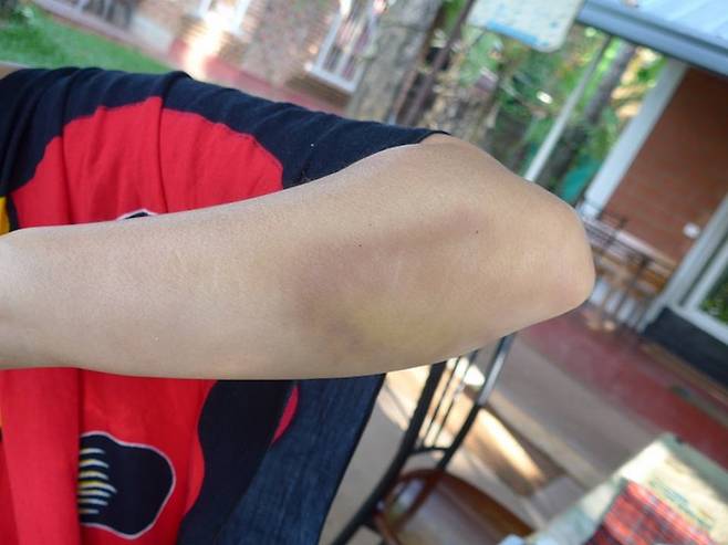 지난번 로칼버스 맨뒤에 앉았다가 팅겨서 생긴 팔의 멍이 오늘 보니 대단하다. 인도여행의 훈장을 하나 받은듯 하다. 하우스보트안에선 와이파이가 안된다니 22시간동안 감옥살이하며 멍때리게 생겼다.
