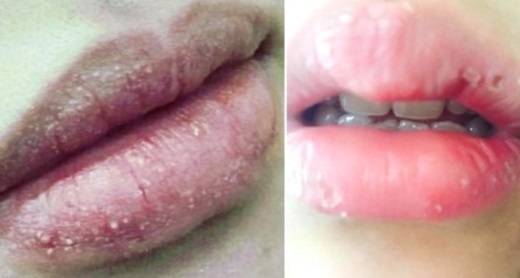 대표적인 부작용 사례는 입술이 부르트고, 입술 안 쪽이 데인 것처럼 각질이 벗겨진다는 것. 게시자는 ‘처음엔 입술이 건조한 편이라 그러려니 했는데, 다른 제품을 바르면 문제가 없었다’며 해당 제품의 부작용을 설명하고 있다.