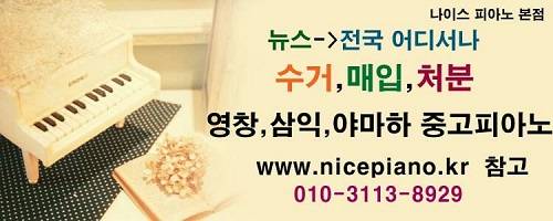이 곳 서울 지역(목동, 강남, 서초)은 물론 전국 방문이 가능한 중고 전문 업체 ‘나이스 피아노’(www.nicepiano.kr)에서는 또한 전체적으로 야마하피아노, 삼익피아노, 영창피아노 등의 중고피아노 매매, 매입을 전문적으로 하고 있다.