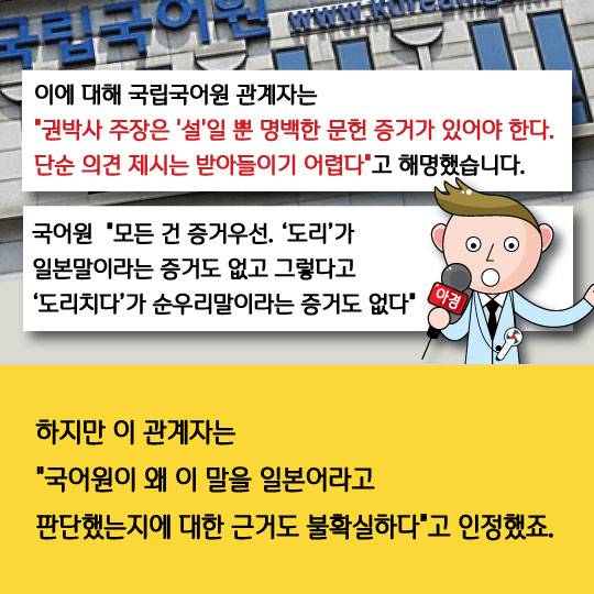 국어원 "모든 건 증거우선. ‘도리’가 일본말이라는 증거도 없고 그렇다고 ‘도리치다’가 순우리말이라는 증거도 없다"