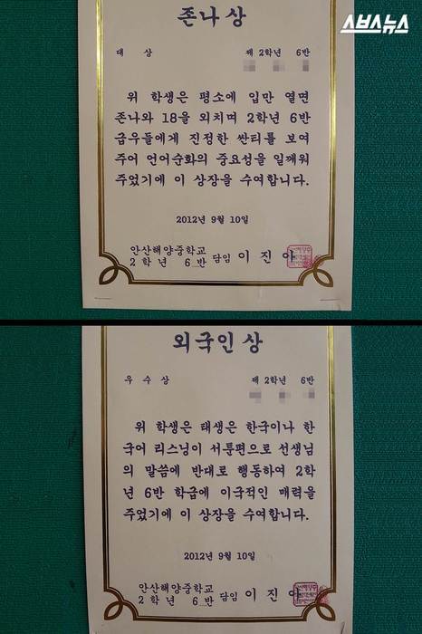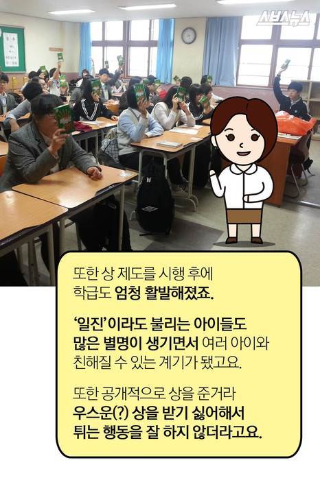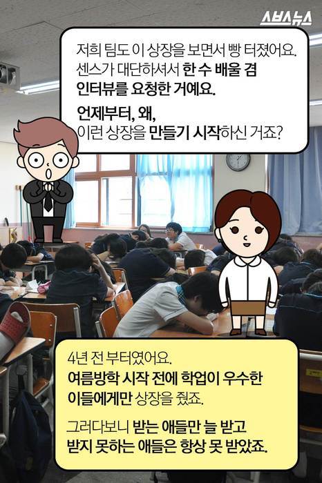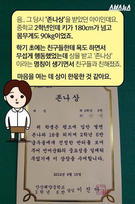 센스 있는 상장을 만든 안산해양중학교 이진아 선생님을 만나 사연을 들어봤습니다.