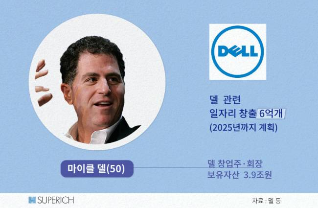 미 경제지 포춘은 지난 6월 델이 반기문 유엔사무총장과 만나 고용창출과 기업가정신 함양과 관련해 의견을 나눴단 소식을 전했습니다. 델은 “양질의 기업가정신은 2025년까지 일자리 6억 개를 만들어내는데 필수적”이라며 “새 고용의 70∼90%가 소규모 기업에서 창출된다”고 주장했습니다. ‘건전한 기업가정신에 기댄 창업 → 새 일자리’의 공식을 설명한 것이죠. 반 총장도 이같은 델의 생각에 동의한 것으로 알려졌습니다.
