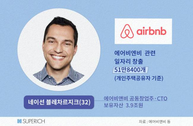 ▶ 에어비앤비, 일자리는 얼마나 공유할까 = 이번 포럼엔 글로벌 숙박공유플랫폼 에어비앤비의 공동창업자도 얼굴을 비쳤습니다. 바로 네이선 블레차르지크(32)입니다. 개인자산 3조9000억원(33억달러)을 쥔 그는 이 회사 최고기술관리자(CTO)입니다.