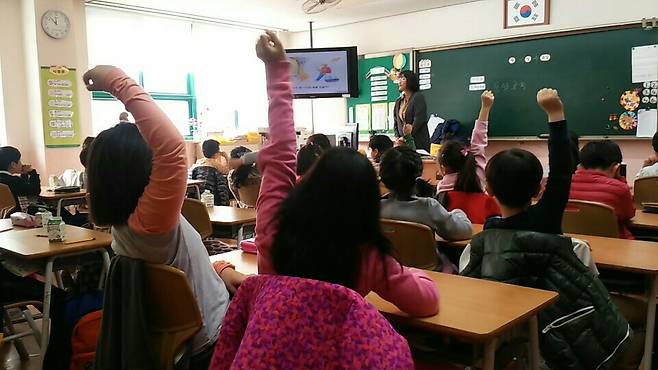 | ▲ 아이들이 수업에 열심히 참여하고 있다. |