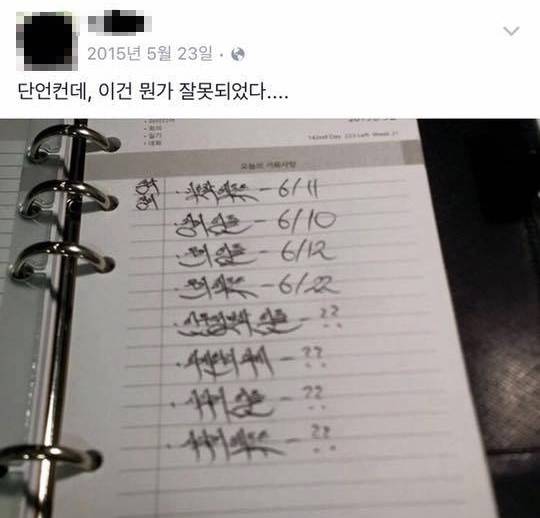 이 해명은 6일 비로소 사실로 확인됐습니다. 해당 대자보를 쓴 학생이 지난해 5월 본인 페이스북에 올린 자필 메모가 커뮤니티에 퍼진 거죠. 이 학생의 글씨체, 원래 이렇더군요. 정자체는 아니지만 나름대로 공들여 쓴 것으로 보입니다.