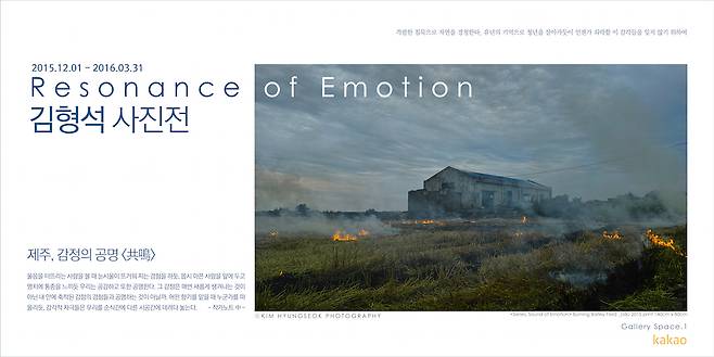 올해 첫번째 전시는 제주의 자연을 소재로 ‘감정’이라는 주제를 다룬 사진작가 김형석의 ‘제주, 감정의 공명’ 전으로 오늘 3월 31일까지 진행된다. 김형석 작가는 2010년 제주로 이주한 이후 네 차례의 개인전과 영상전을 통하여 작품세계를 보여준 바 있으며 제주의 자연을 소재로 ‘감정’이라는 주제를 다룬 그의 작품들을 스페이스닷원에서 재조명한다.