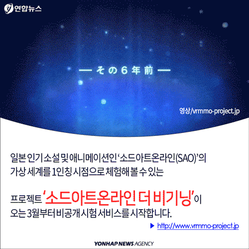 이 중에서도 게임은 일찌감치 VR 헤드셋의 기본 기능을 지원하는 작품들이 다양하게 출시돼 시장을 선도하고 있습니다. 아직은 단순한 화면 보기 수준이어서, 제대로 된 가상현실 체험은 요원한데요. 일본의 인기 소설 및 애니메이션 '소드아트온라인(SOA)'을 1인칭 시점 VR 게임으로 체험할 수 있는 '소드아트온라인 더 비기닝'이 오는 3월부터 비공개 시험 서비스를 예고해 기대를 모으고 있습니다.