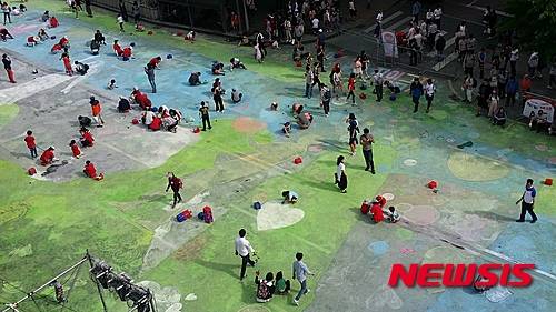 【대구=뉴시스】정창오 기자 = 대구시가 7일부터 8일까지 이틀간 개최되는 2016컬러풀대구페스티벌에서 역점적으로 추진한 분필아트 신기록 수립 도전이 실패로 돌아갔다.