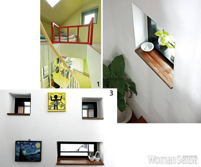 2, 3. 풍부한 햇볕과 공기는 거주자의 쾌적한 생활에 중요한 요소다. 곳곳에 창문을 만들고 액자와 그림을 걸어 인테리어 포인트를 주었다.