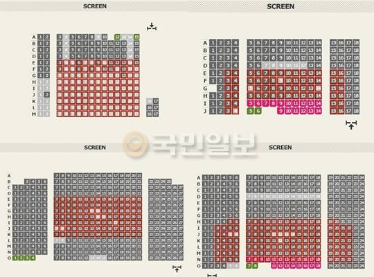 쿡기자가 주로 이용하는 영등포CGV 상영관을 살펴볼까요? 빨간색으로 표시된 부분이 프라임존입니다.