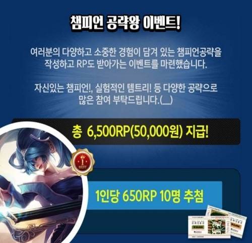 'LoL 헝그리앱', 챔피언 공략 작성 시 RP 지급