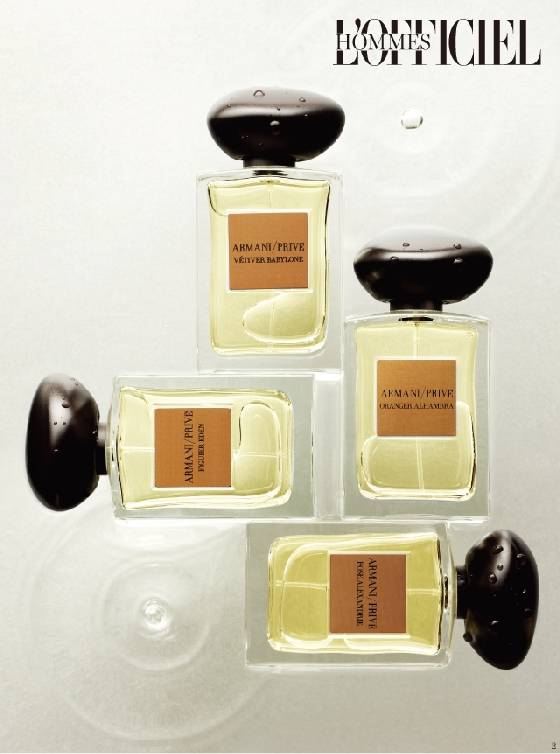 라 콜렉시옹라 콜렉시옹은 상류층만이 좋은 향기를 풍길 권리를 가졌던 근세 유럽에서 영감을 받은 향수 라인이다. 소수의 왕족과 귀족이 사용했던 원료에 현대적인 감각을 더해 재해석했다. ‘오 드 쟈드 오 드 퍼퓸’은 나폴레옹이 하루에 60병을 사용할 정도로 애용했다는 오 드 콜로뉴의 향을 현대적으로 재해석한 향수다. 베르가모트의 시원한 향에 마다가스카르의 페퍼로 모던함과 생기를 더했다. ‘피에르 드 륀 오 드 퍼퓸’은 18세기 귀족들의 가발에 사용된 아이리스와 파우더 향을 재현했다. 조르지오 아르마니는 패브릭처럼 정교한 꽃향기를 개발했다. ‘퀴르아메티스트 오 드 퍼퓸’은 감각적이고 매혹적인 소재인 가죽의 향을 담고 있다. 러시아 평원에서 생활하던 코사크 전사들이 자신들의 가죽 장화에 자작나무 껍질을 문질러 향기가 나도록 했던 것에서 영감을 얻어 만들었다.