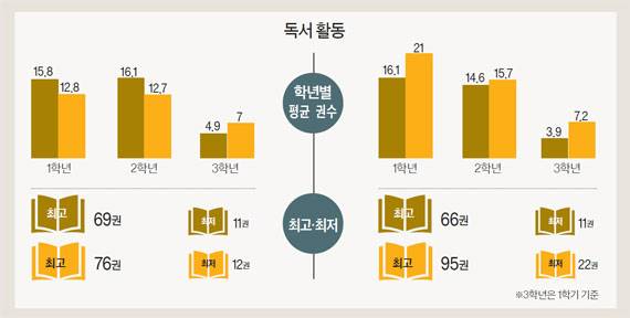 이런 특성이 잘 드러나는 부분이 독서 기록이다. 서울대는 전국 대학 중 유일하게 자기소개서에서 고교 재학 중 인상 깊게 읽은 책을 3권 이내로 선정해 책을 읽게 된 계기, 책에 대한 평가, 자신에게 준 영향을 서술하도록 하고 있다. 지난해 합격생 82명의 독서 기록을 살펴보면 지역균형의 경우 일반고 출신은 평균 약 30권을, 특목고·자사고 출신은 평균 약 44권을 고등학교 재학 중 읽은 것으로 나타났다. 일반전형도 이와 비슷하다. 일반전형 일반고 합격생은 약 35권을, 특목고·자사고 출신 학생은 약 33권을 평균적으로 읽었다. 임성호 대표는 “진로 관련 책을 주로 읽으면서 특정 분야에만 매몰되지 않고 인문·사회·과학을 넘나들며 폭넓게 읽는 학생이 많았다”고 분석했다.