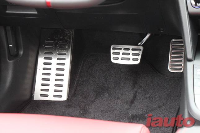 실내공간에 들어서면 레드 컬러의 스포츠 버킷 시트가 몸을 감싸주듯 하면서 차량이 갖고 있는 성능을 인지하도록 만든다. 여기에 스포츠 드라이빙을 위한 D컷 스티어링 휠과 계기판에 구성된 메탈재질의 원형 라인은 전체적인 분위기를 압도당하도록 한다.