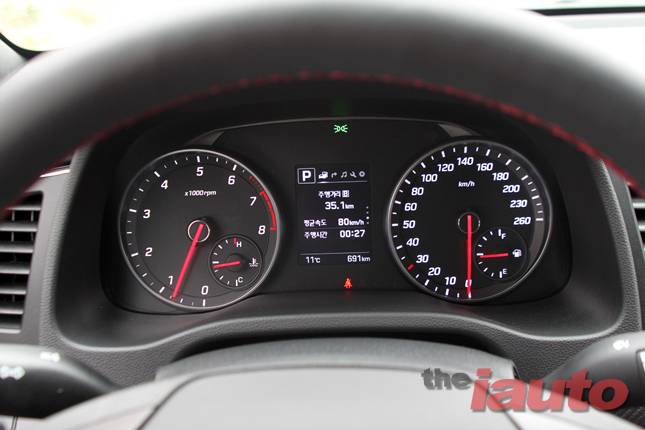 송도 도심서킷을 떠나면서 운전석에 앉았다. 조수석에 비해 더욱 안정된 포지션이 유지되도록 구성돼 가속페달을 깊숙하게 밟고 싶다는 생각이 먼저 들게 만든다. 변속 레버를 D레인지에 놓고 가속 페달을 밟아 도로에 들어서면서 이전 아반떼와는 전혀 다른 묵직함이 다가오면서 스피도미터 게이지도 빠르게 올라선다.