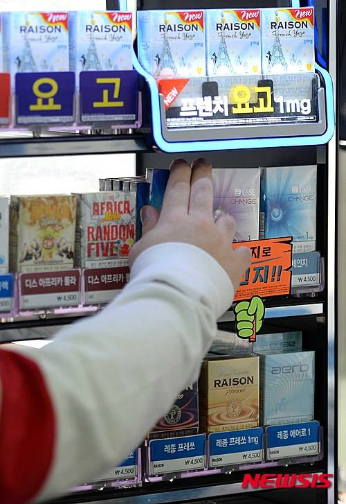 【서울=뉴시스】고범준 기자 = 담배 한 개비에서 두 가지 맛이 새롭게 자리매김 하며 캡슐담배 시장이 성장세를 이어갈 전망으로 보이는 11일 오후 서울 서초구의 한 편의점 담배 진열대에 여러 종류 캡슐담배들이 진열되어 있다. 2016.05.11.